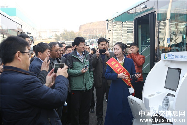 2017年3月5日,青島真情巴士智慧公交9路線在西海岸新區(qū)投入運(yùn)行,標(biāo)志著全國首條智慧公交 “車智網(wǎng)”線路正式落地。記者在現(xiàn)場看到,駕駛員上班之前要進(jìn)行血壓與酒精自動檢測,合格后方可執(zhí)行營運(yùn)任務(wù)。乘客上車如果攜帶危險物品,車載危險物品檢測設(shè)備將發(fā)出報警,提醒車內(nèi)乘客注意安全,駕駛員也將采取措施禁止該乘客上車。