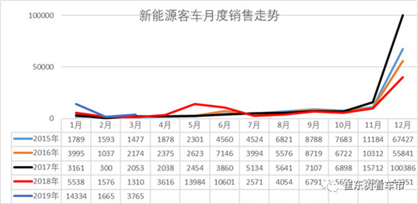 在中國客車市場全年的銷量中,新能源占據(jù)了舉足輕重的作用,改變了中國客車市場的銷售規(guī)律,每年12月份新能源客車銷售高峰對全年銷售貢獻度極高。