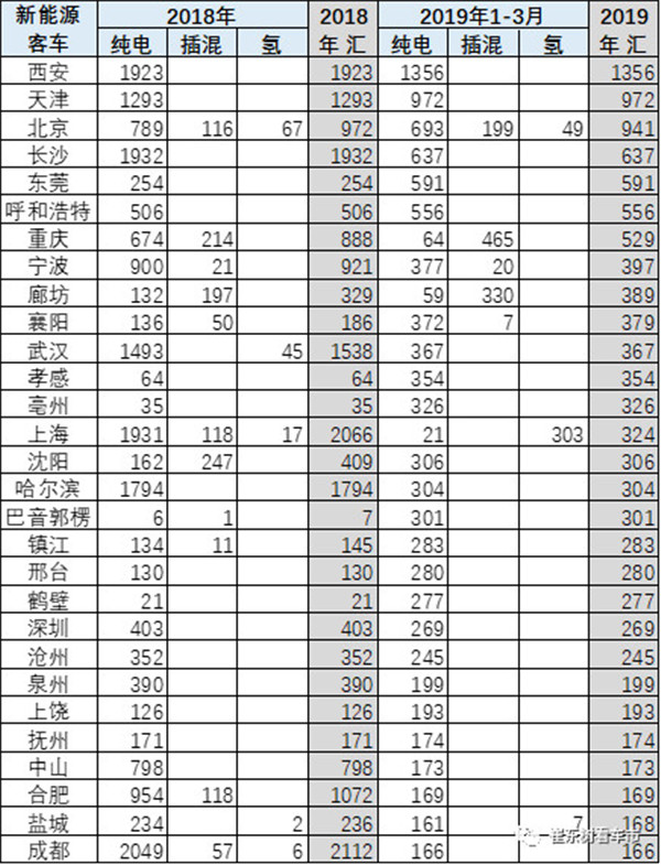 2019年1-3月的西安、天津、呼和浩特、北京等北方省會城市的的客車表現(xiàn)較好。部分城市19年1-3月銷量超越18年全年。