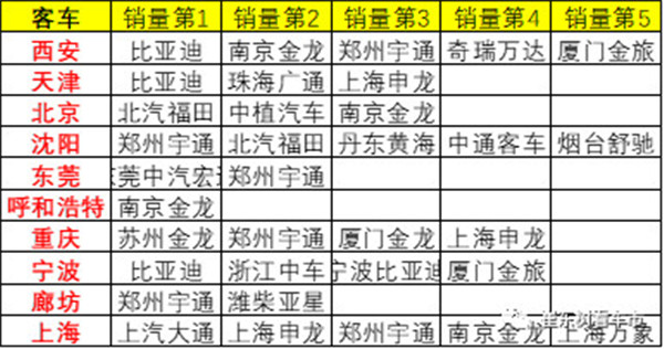 客車企業(yè)數(shù)量眾多,主力企業(yè)參與并非很強。鄭州宇通、比亞迪、湖南中車和南京金龍等表現(xiàn)較強等表現(xiàn)突出。(崔東樹)