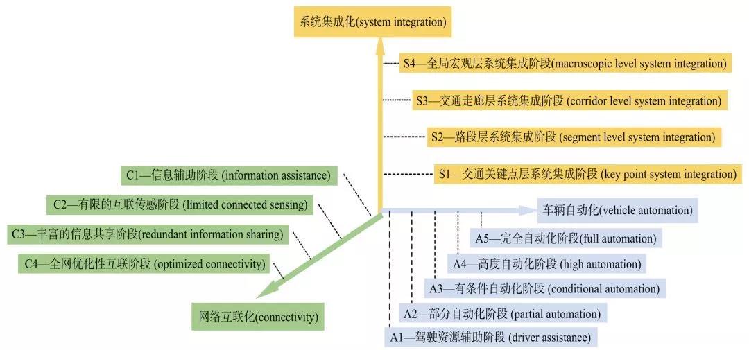 圖 2 智能網(wǎng)聯(lián)交通系統(tǒng)集成化發(fā)展階段示意圖