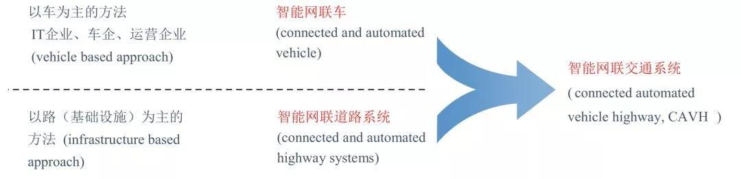 就技術(shù)發(fā)展路徑而言,目前智能網(wǎng)聯(lián)交通系統(tǒng)分為 2 個(gè)發(fā)展方向,即智能網(wǎng)聯(lián)汽車和智能網(wǎng)聯(lián)道路,如圖 3 所示。IT 企業(yè)、車企和運(yùn)營企業(yè)主要開展以車為主的智能網(wǎng)聯(lián)汽車技術(shù)研究;道路交通行業(yè)以路為主進(jìn)行智能網(wǎng)聯(lián)道路系統(tǒng)研究。智能網(wǎng)聯(lián)交通系統(tǒng)融合了智能網(wǎng)聯(lián)汽車與智能網(wǎng)聯(lián)道路的技術(shù)優(yōu)勢,協(xié)調(diào)發(fā)展,最終實(shí)現(xiàn)自動(dòng)駕駛。