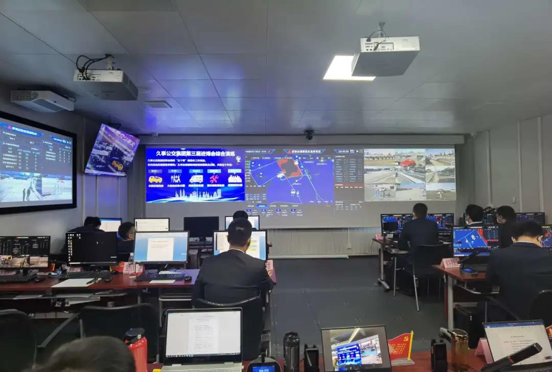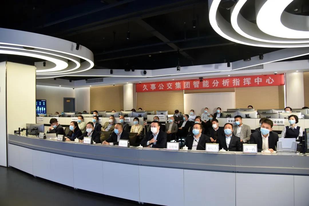 在前線指揮中心的指揮下,五個(gè)科目的演練有序開展,演練全過程向位于吳中東路555號(hào)的久事公交集團(tuán)智能分析指揮中心連線實(shí)況視頻匯報(bào)。