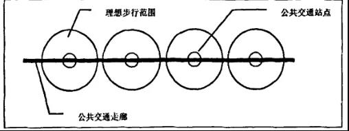 將城市規(guī)劃的范圍從小區(qū)、近鄰街區(qū)擴(kuò)展到地區(qū)、區(qū)域,力圖形成小而緊湊、公共交通便利的城市。其基本理念是:“從公共交通的站點(diǎn)可步行到商業(yè)設(shè)施、住宅、工作單位和公共設(shè)施。”城市規(guī)劃以土地利用為導(dǎo)向,交通系統(tǒng)規(guī)劃取決于土地利用模型的輸出,核心思想是沿公共交通走廊為發(fā)展軸,公交站點(diǎn)為節(jié)點(diǎn)的布局方式,在每個(gè)節(jié)點(diǎn)集中的土地開發(fā)。這是一種集居住、工作、商業(yè)等功能的混合開發(fā),并且這些節(jié)點(diǎn)都在步行距離范圍內(nèi)。