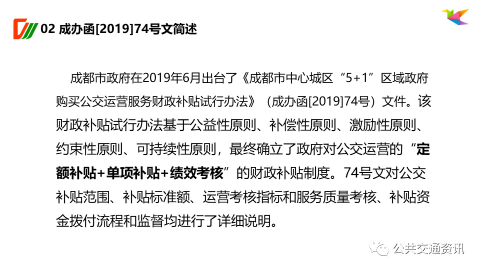 該財政補(bǔ)貼試行辦法基于公益性原則、補(bǔ)償性原則、激勵性原則、約束性原則、可持續(xù)性原則,最終確立了政府對公交運營的“定額補(bǔ)貼+單項補(bǔ)貼+績效考核”的財政補(bǔ)貼制度。財政補(bǔ)貼試行辦法文件中對公交補(bǔ)貼范圍、補(bǔ)貼標(biāo)準(zhǔn)額、運營考核指標(biāo)和服務(wù)質(zhì)量考核、補(bǔ)貼資金撥付流程和監(jiān)督均進(jìn)行了詳細(xì)說明。
