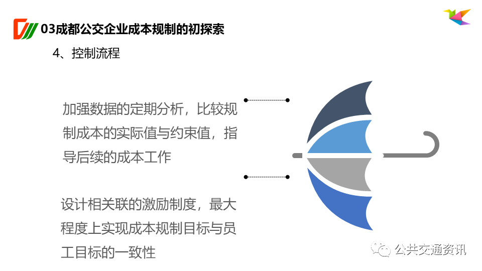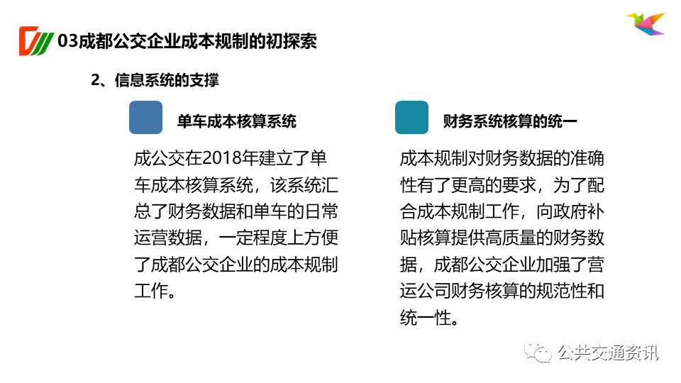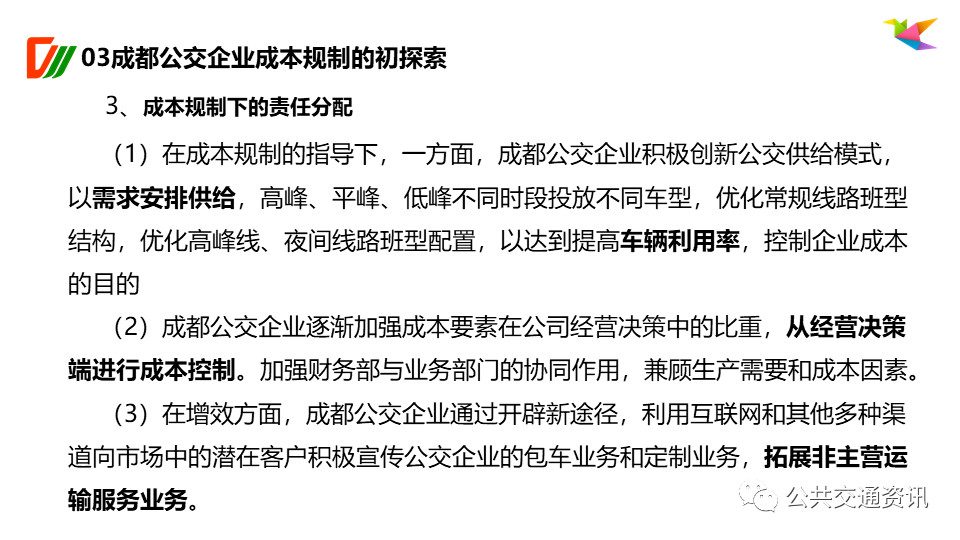 根據(jù)成辦函[2019]74號文的文件精神,成都公交企業(yè)首先組織了公司管理人員對成本規(guī)制下的財政補(bǔ)貼政策的學(xué)習(xí),分析了如何通過成本規(guī)制提升公司的經(jīng)營管理。在學(xué)習(xí)和討論的前提下,將成本規(guī)制工作轉(zhuǎn)化為可執(zhí)行的任務(wù),抓住關(guān)鍵指標(biāo)的控制,同時兼顧其他有效的成本管理工作,并實時對成本規(guī)制工作實況進(jìn)行分析和調(diào)整。