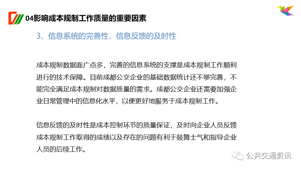 成本規(guī)制所需數(shù)據(jù)比較多,且對成本的實時分析和調(diào)整要求較高,完善、充足的信息系統(tǒng)的支撐是成本規(guī)制工作順利進(jìn)行的技術(shù)保障。目前成都公交企業(yè)的基礎(chǔ)數(shù)據(jù)統(tǒng)計還不夠完善,不能完全滿足成本規(guī)制對數(shù)據(jù)質(zhì)量的需求。公交行業(yè)的數(shù)據(jù)多而雜,大量數(shù)據(jù)通過人工統(tǒng)計和梳理不僅進(jìn)度較為滯后,且管理效率和數(shù)據(jù)真實性較差,不利于成本動態(tài)管理。成都公交企業(yè)還需要加強(qiáng)企業(yè)日常管理中的信息化水平,以便更好地服務(wù)于成本規(guī)制工作。