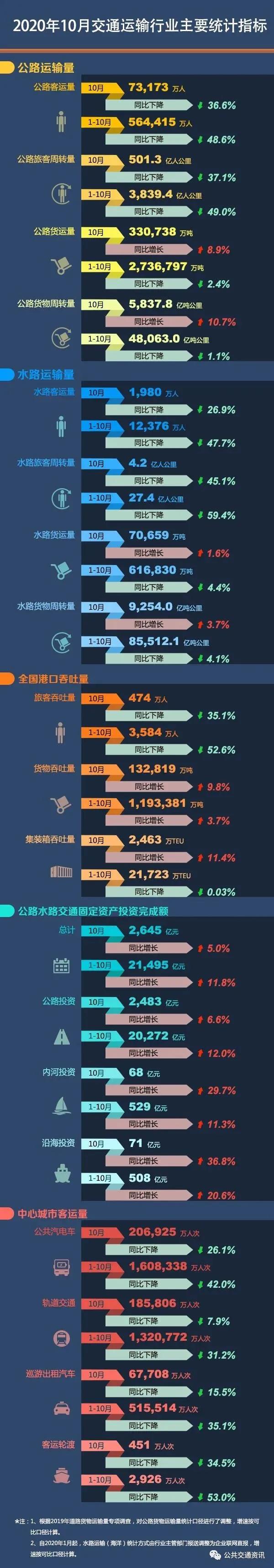 公共汽電車:10月客運(yùn)量206,925萬(wàn)人次,同比下降26.1%;1~10月客運(yùn)量1,608,338萬(wàn)人次,同比下降42.0%。