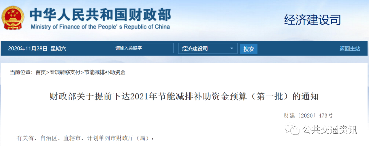 財政部關于提前下達2021年節(jié)能減排補助資金預算(第一批)的通知