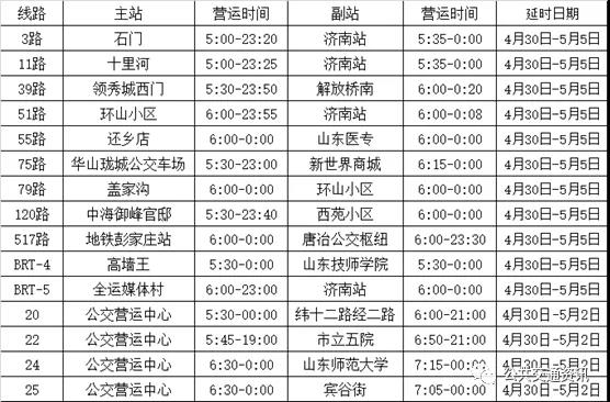 濟(jì)南公交將密切跟蹤三條地鐵線路的客流情況,科學(xué)制定行車作業(yè)計劃,適時增加接駁線路的班次投入。根據(jù)小長假夜間出行客流增大情況,4月30日-5月5日,在現(xiàn)有零點(diǎn)公交的基礎(chǔ)上,臨時延長3路、11路、39路、51路、55路、75路、79路、120路、517路、BRT-4號線、BRT-5號線的營運(yùn)時間至24:00,進(jìn)一步做好公交與地鐵的銜接保障。
