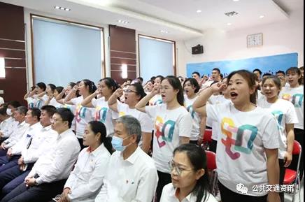 活動現(xiàn)場,濟(jì)南公交五星級駕駛員代表紛紛上臺,周蒨與秦美玲共同為五星級駕駛員代表們佩戴星級臂章。隨后,全國五一勞動獎?wù)芦@得者董丹帶領(lǐng)駕駛員宣誓:不忘初心、不辱使命,爭做三牛、服務(wù)一流;車廂有溫度、服務(wù)無止境,建功新時代、奮進(jìn)新征程。