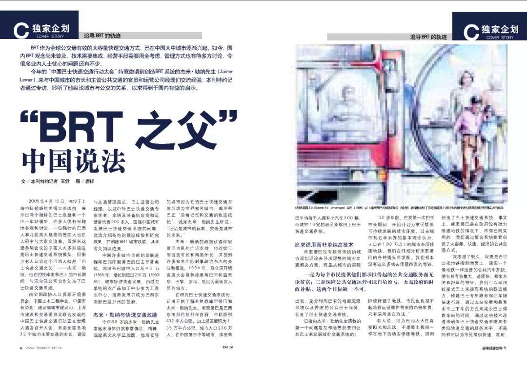 為了紀(jì)念杰米·勒納,我們特別摘選了《追尋BRT的軌跡》(2005年第5期)一文,以饗讀者。