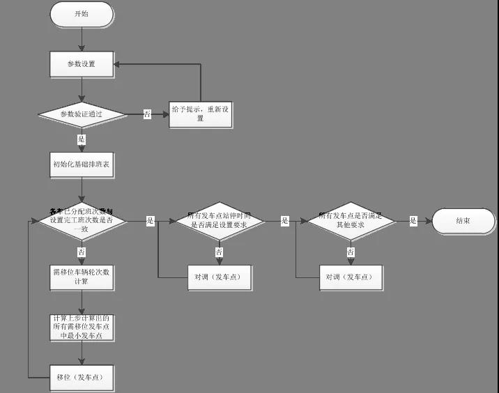 公交車輛班次計(jì)劃編制以“自動(dòng)、智能”為主要設(shè)計(jì)思路,結(jié)合數(shù)學(xué)算法實(shí)現(xiàn)排班系統(tǒng)的智能化。在原有調(diào)度人員的經(jīng)驗(yàn)進(jìn)行計(jì)劃排班的基礎(chǔ)上,根據(jù)實(shí)際運(yùn)營(yíng)結(jié)果,不斷對(duì)排班參數(shù)及實(shí)現(xiàn)流程進(jìn)行自動(dòng)修正和優(yōu)化,從而達(dá)到自學(xué)習(xí)、優(yōu)化排班結(jié)果的目標(biāo)。