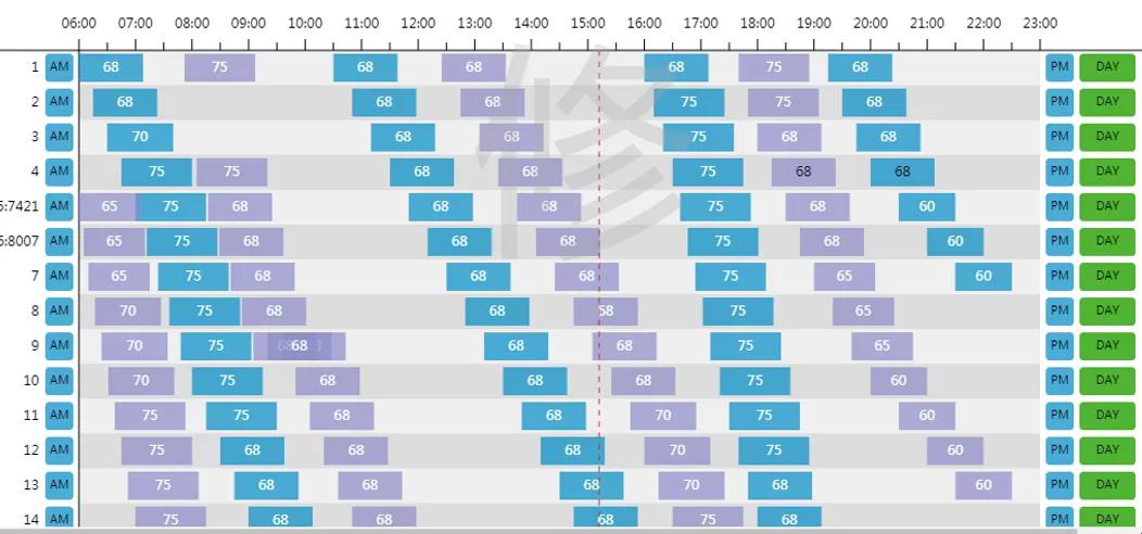 將全天劃分為6個(gè)時(shí)段,早低峰、早高峰、平峰、晚高峰、晚平峰、晚低峰,班制分為:正班、一班半、高峰班和正班單。