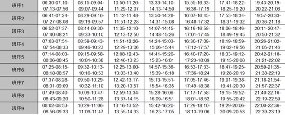 圖11 某條線路發(fā)車時(shí)刻表
