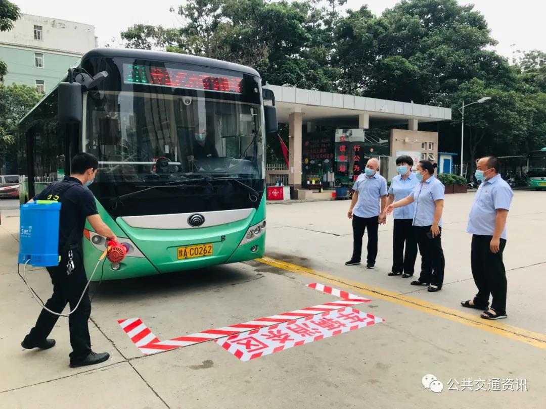 在車(chē)輛上張貼健康碼、車(chē)輛消毒記錄表并設(shè)立專職車(chē)輛消殺員。為消殺員配備一套防護(hù)服、一個(gè)電動(dòng)噴霧器、一個(gè)小噴壺、一次性手套、一個(gè)抹布,并要求所有車(chē)輛“趟消趟清趟通”,全力以赴對(duì)車(chē)輛做到“一趟一消毒”、“一趟一清理”、“一趟一通風(fēng)”,重點(diǎn)對(duì)車(chē)廂座椅、欄桿、拉環(huán)扶手、車(chē)身、地板、門(mén)窗等乘客容易接觸較多的位置以及空調(diào)濾網(wǎng)嚴(yán)格用消毒水噴灑擦拭,每次消殺完畢后及時(shí)填寫(xiě)車(chē)輛消毒記錄表,確保做到“無(wú)死角”、“全覆蓋”。四公司消殺員在消殺公交車(chē)廂。