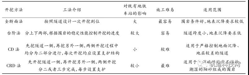 表1淺埋暗挖法開(kāi)挖方法對(duì)比