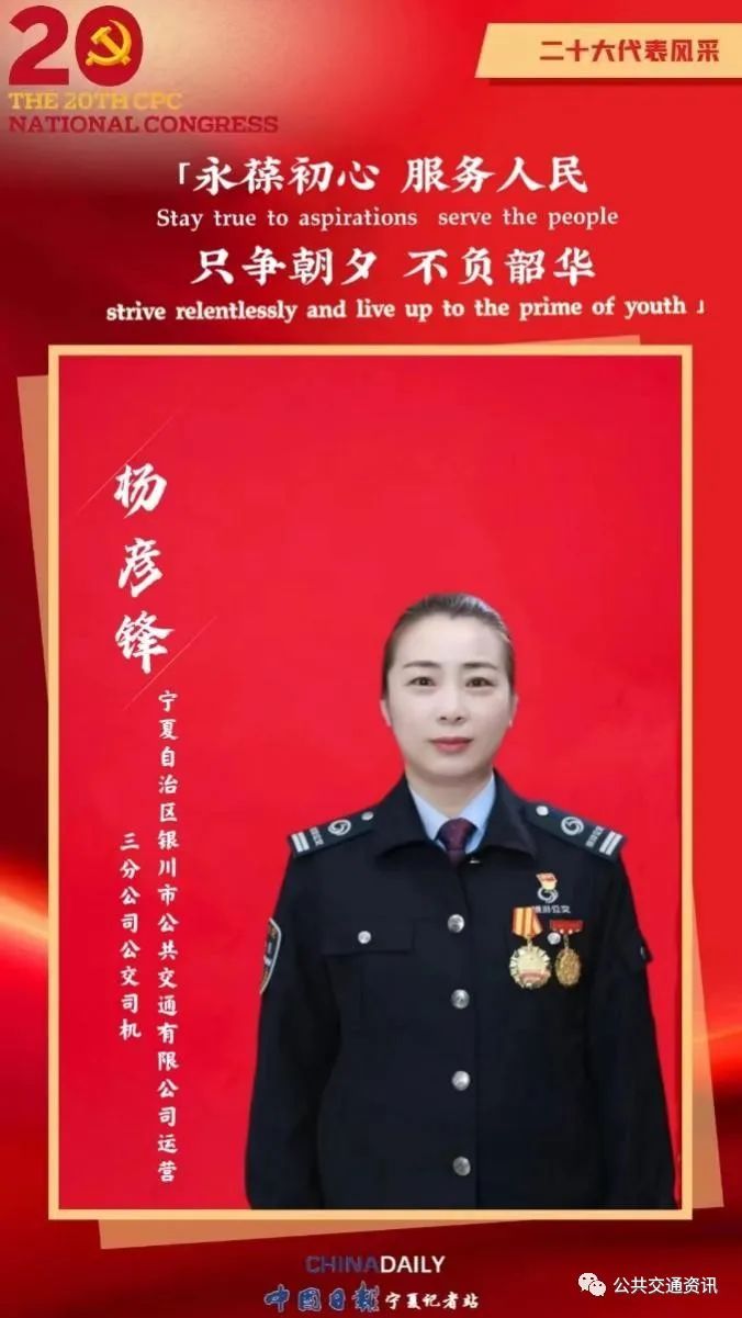 今年,她被推選為黨的二十大代表。楊彥鋒說作為一名共產黨員,我愿意為乘客一直服務下去。(中國日報寧夏記者站 胡冬梅 海報 鞏夢怡)