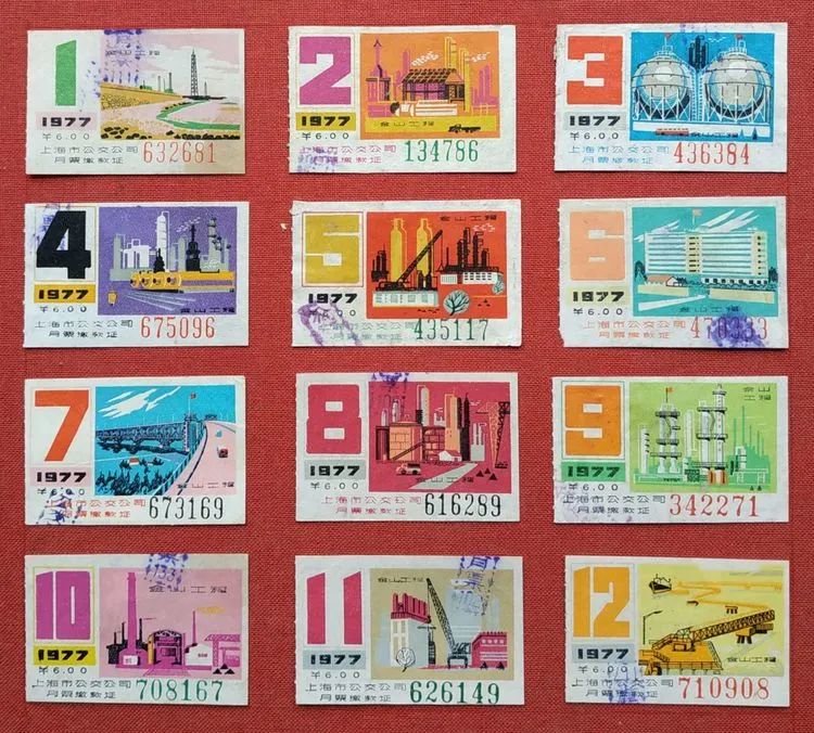 1977年上海公交月票上第一次出現了以上海石油化工總廠的“金山工程”為全年月票花的表現內容。