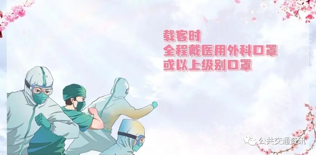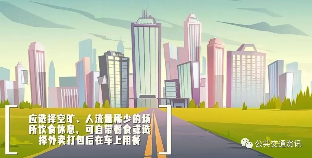 載客時應全程佩戴醫用外科口罩或以上級別口罩,并提醒車上乘客佩戴一次性使用醫用口罩、醫用外科口罩或以上級別口罩。運行期間可半開車窗保持空氣流通。(陰雨等不良天氣車窗不宜打開時,保證車輛外循環開啟)應選擇空曠、人流量稀少的場所飲食休息,可自帶餐食或選擇外賣打包后在車上用餐。