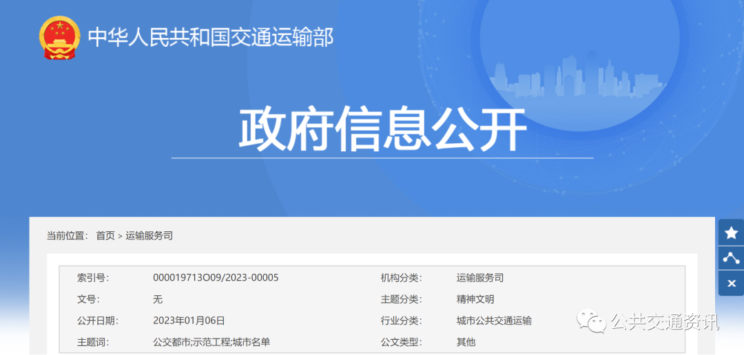 關(guān)于擬公布“十四五”期國(guó)家公交都市建設(shè)示范工程創(chuàng)建城市名單的公示