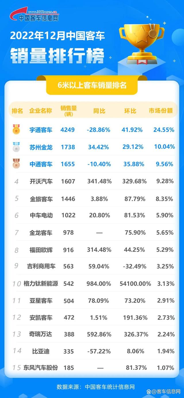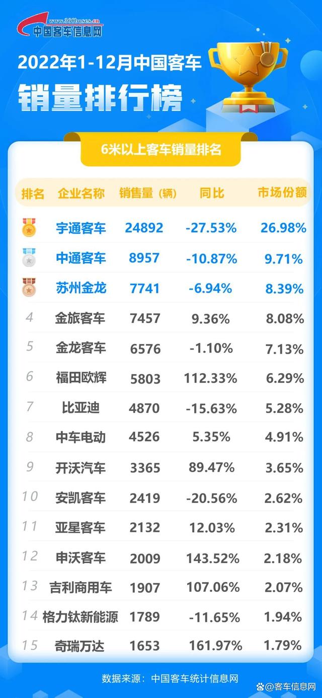 2022年度中國(guó)6米以上客車銷量排行榜正式出爐!