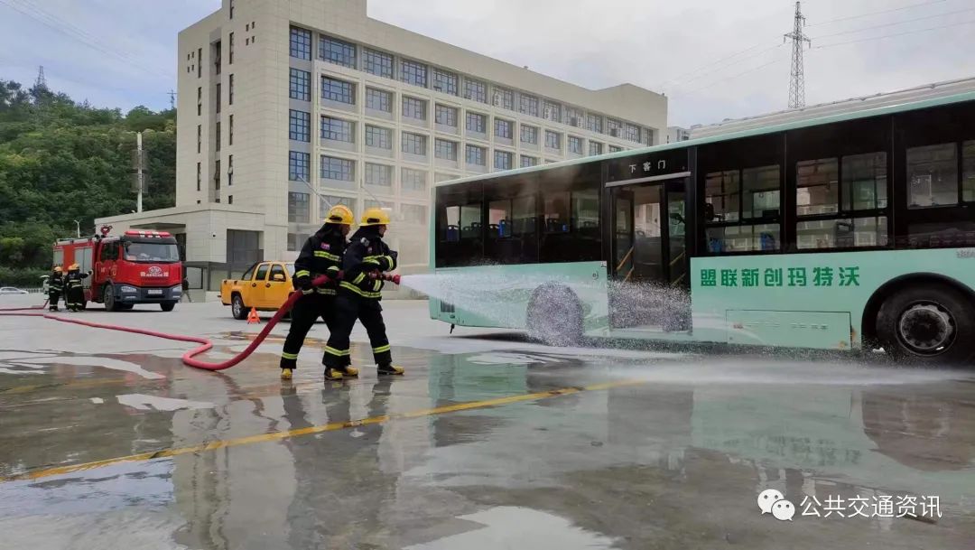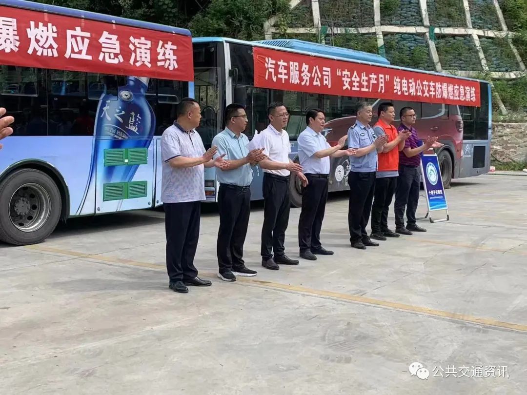 此次演練主要針對純電動公交因高溫起火的突發(fā)火災的應急處置,從公交車火災的發(fā)現(xiàn)、火災的初期處置、滅火器的使用、現(xiàn)場的封鎖、突發(fā)事件應急通信、消防部門的緊急施救、醫(yī)療部門對傷員的緊急救治等方面進行了全方位演練。為確保演練場景的真實性,十堰公交三公司結(jié)合公交運營實際情況制定詳細演練方案,最大化的還原公交營運期間可能遇到的真實突發(fā)緊急情況。
