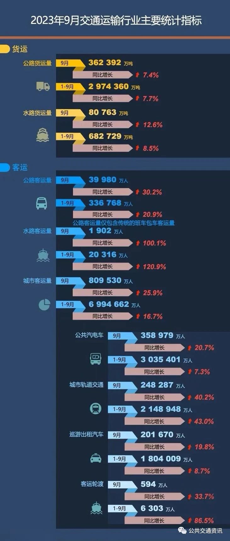 城市軌道交通9月248 287萬(wàn)人次,同比增長(zhǎng)40.2%;1~9月2 148 948萬(wàn)人次,同比增長(zhǎng)43.0%。