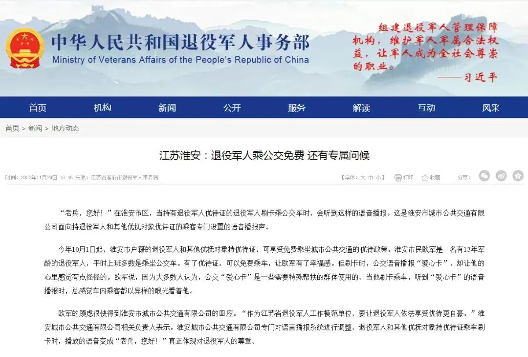 淮安市城市公共交通有限公司(簡稱“淮安公交”)現(xiàn)有員工2010余人,其中退役軍人263人,隨軍家屬4人。近年來,淮安公交堅(jiān)持以習(xí)近平新時(shí)代中國特色社會(huì)主義思想為引領(lǐng),以“讓退役軍人成為全社會(huì)尊重的人,讓軍人成為全社會(huì)尊崇的職業(yè)”目標(biāo)為遵循,以提高退役軍人歸屬感、榮譽(yù)感、幸福感為追求,精心打造“幸福老兵”退役軍人工作品牌,先后榮獲“全國文明單位”“全國工人先鋒號(hào)”“江蘇省退役軍人工作模范單位”“江蘇省優(yōu)秀‘戎耀之家’”等122項(xiàng)國家、省、市級(jí)殊榮。