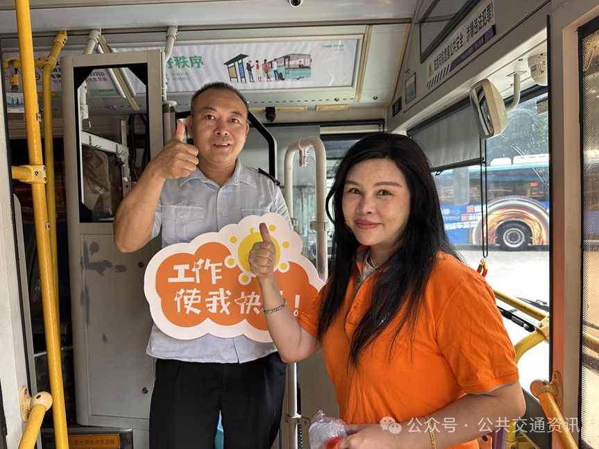 活動(dòng)期間,車廂慰問環(huán)節(jié)成為一道溫暖人心的風(fēng)景線。每當(dāng)有駕駛員駕駛著公交車回到場站,工會(huì)關(guān)愛專員便會(huì)主動(dòng)迎上前去,送上一句句真摯且飽含深情的話語:“師傅,您辛苦了!感謝您一直以來為公司付出的努力!”這些樸實(shí)而溫暖的話語,如同一股暖流,流淌在每一位駕駛員的心間,讓他們?cè)谄v的工作后倍感溫暖與鼓舞,臉上洋溢著幸福的笑容。