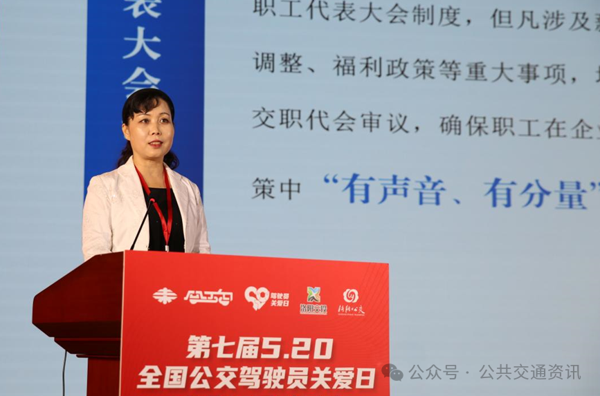會(huì)上,洛陽(yáng)交投集團(tuán)黨委委員、工會(huì)主席兼洛陽(yáng)公交集團(tuán)黨委書(shū)記、董事長(zhǎng)金燕、珠海公交運(yùn)輸集團(tuán)工會(huì)常務(wù)副主席徐樹(shù)亮分享了洛陽(yáng)公交、珠海公交關(guān)愛(ài)公交職工的溫暖經(jīng)驗(yàn),為行業(yè)提供了可復(fù)制的職工關(guān)懷樣本。