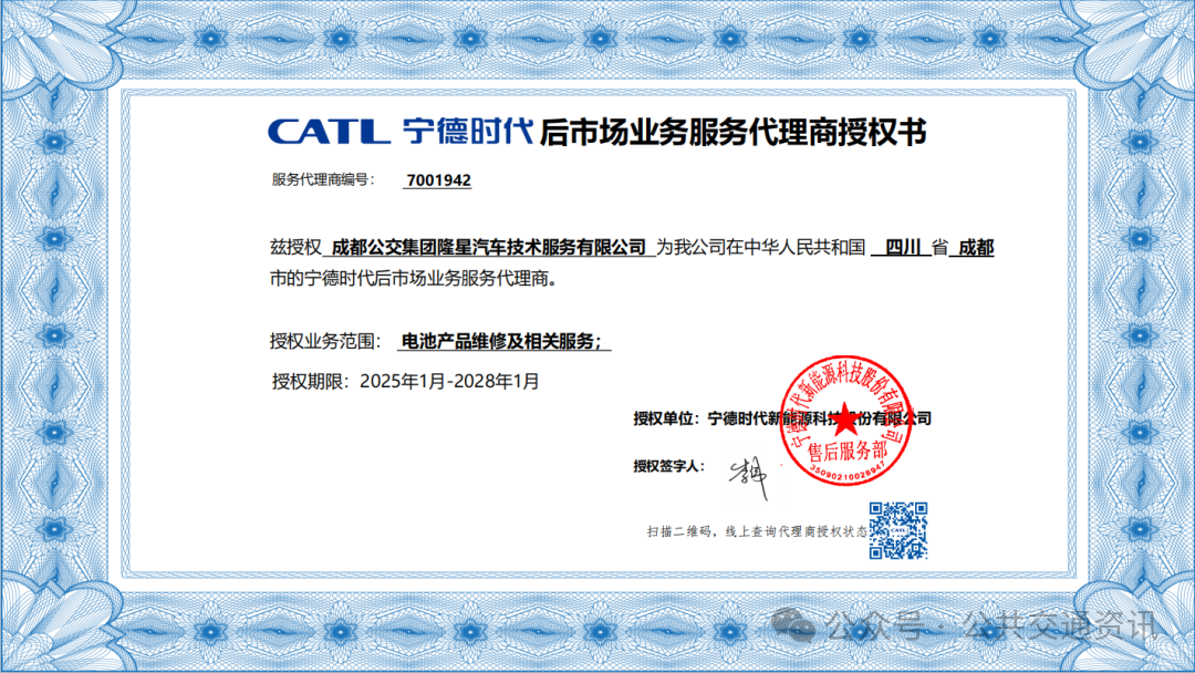 今年年初,成都公交與寧德時代正式簽訂“寧家服務(wù)”直營體驗(yàn)中心合作協(xié)議,成為成都地區(qū)獨(dú)家加盟商,獲得寧德時代產(chǎn)品、技術(shù)、品牌全維度支持?!皩幖曳?wù)”依托寧德時代成熟的電池后市場技術(shù)與管理體系,具備電池健康檢測、深度維修、保養(yǎng)維護(hù)、再生回收等全鏈條能力。