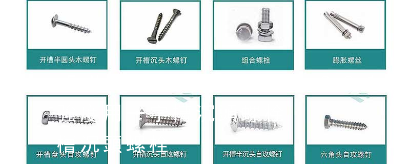 螺栓有:1、方頭螺栓,2、半圓頭方頸螺栓,3、十字槽盤頭螺釘,4、內六角沉頭螺釘,5、方螺母C級,6、蝶形螺母,7、六角頭螺栓,8、十字槽盤頭自攻螺釘。大小有M18、M6、M8、M16、M10、M12、M14、M20等型號。通常用