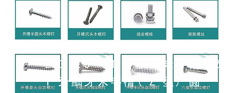 1、頭部形狀頭部形狀各式各樣。有圓頭(半圓頭)、扁圓頭、圓頭凸緣(帶墊)、扁圓頭凸緣(帶墊)、盤頭、盤頭凸緣(帶墊)、沉頭、半沉頭、圓柱頭、球面圓柱頭、喇叭頭、六角頭、六角法蘭頭、六角凸緣(帶墊)頭等。2 主要分類包括普通螺絲、機螺絲、自攻螺絲和膨脹螺絲三種。 有頭螺釘Cap screw 過去限于全牙的扣件。 六角頭螺釘Hex cap screw與大六角螺栓Hex bolt 顧名思義為頭部為六角型的外螺紋扣件,設計為使用扳手轉動。依照ASME B18.2.1標準,六